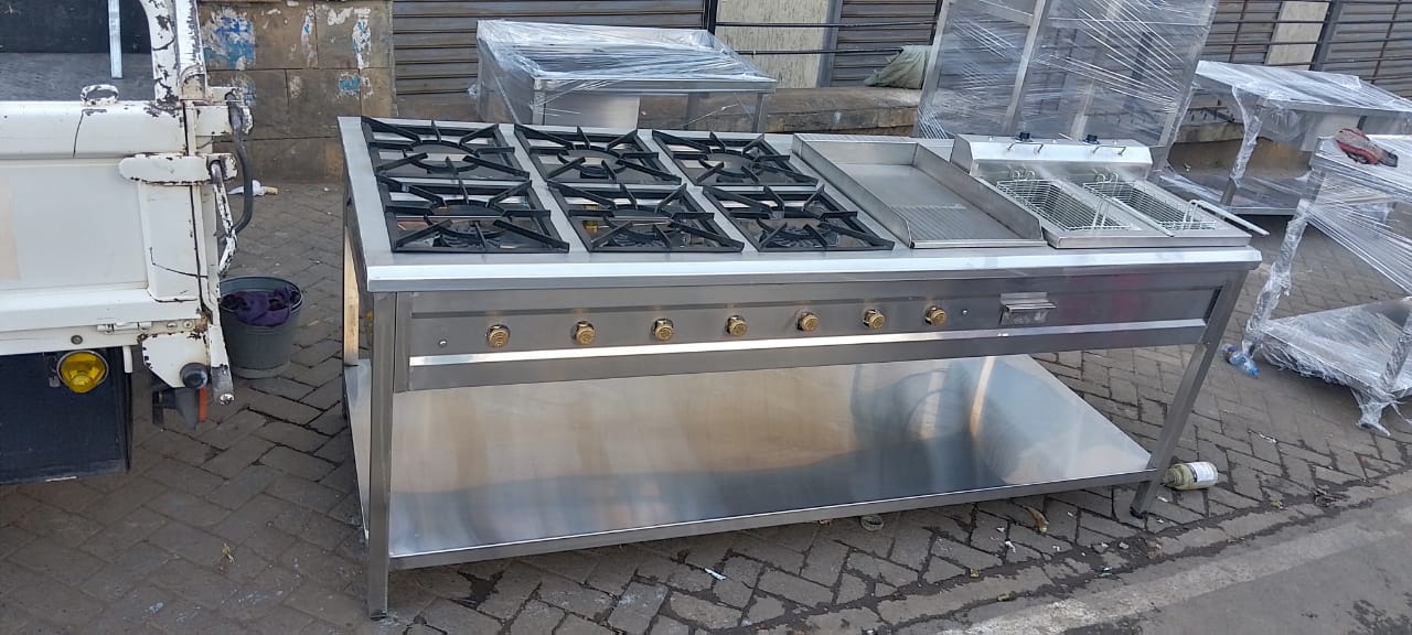 made of stainless steel materials with high quality six burner,hot plate and deepfryer